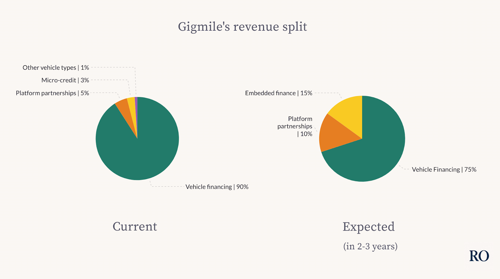 In terms of revenue mix, (as mentioned above) vehicle financing will remain our largest contributor, though its share is expected to decline to around 75% as we diversify. Embedded finance will account for roughly 15%, while platform partnerships (where we directly supply riders to platforms), will contribute the remaining 10%.