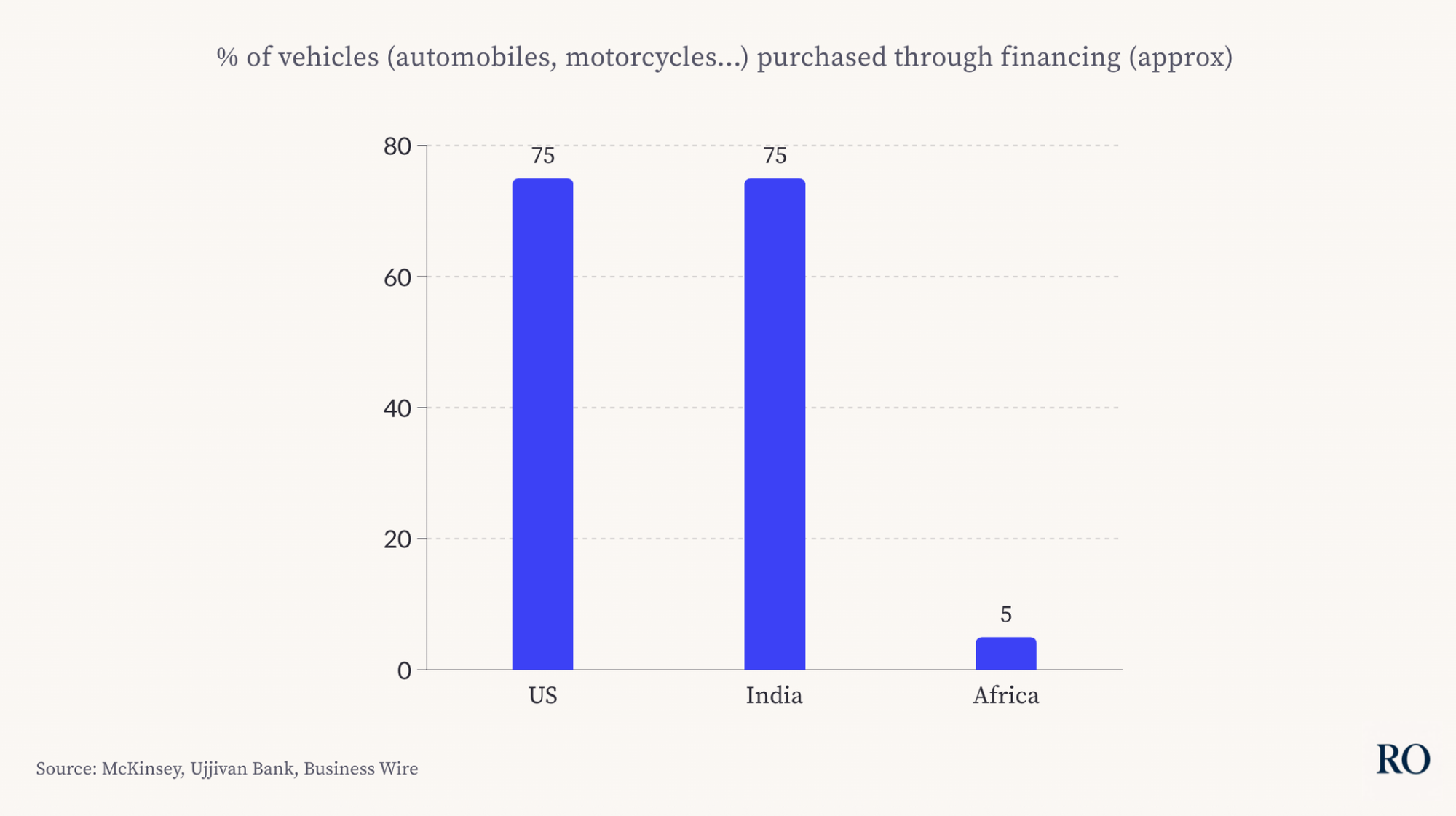 In developing markets, auto-OEMs usually have a financing arm that works with buyers to set up a financing plan for their vehicle. Companies like Bajaj and TVS do this in India. But in Africa, OEM-led financial infrastructure for automobile purchases doesn’t exist. We are filling that gap.